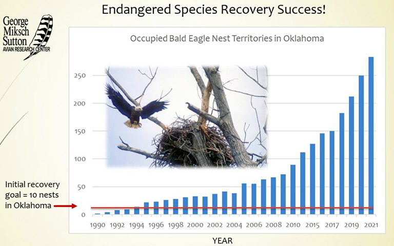 This chart demonstrates the success of reintroducing bald eagles to Oklahoma.